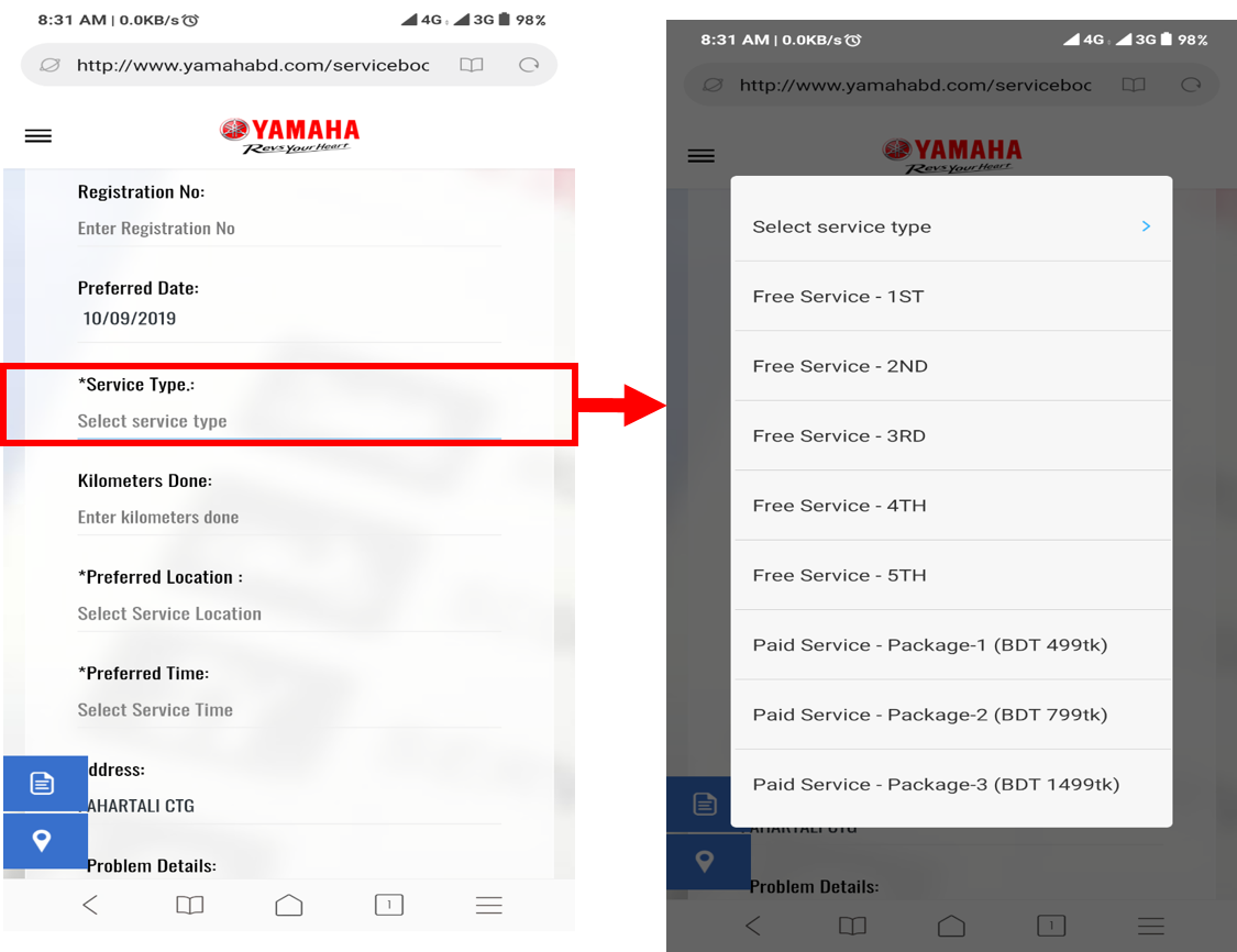 বাংলাদেশে ইয়ামাহা ব্যাবহার কারিদের সুবিধারথে মোবাইলের মাধ্যমে কিভাবে আপনি আপনার বাইকের সার্ভিস বুকিং করবেন তার বিস্তারিত তুলে ধরা হল…