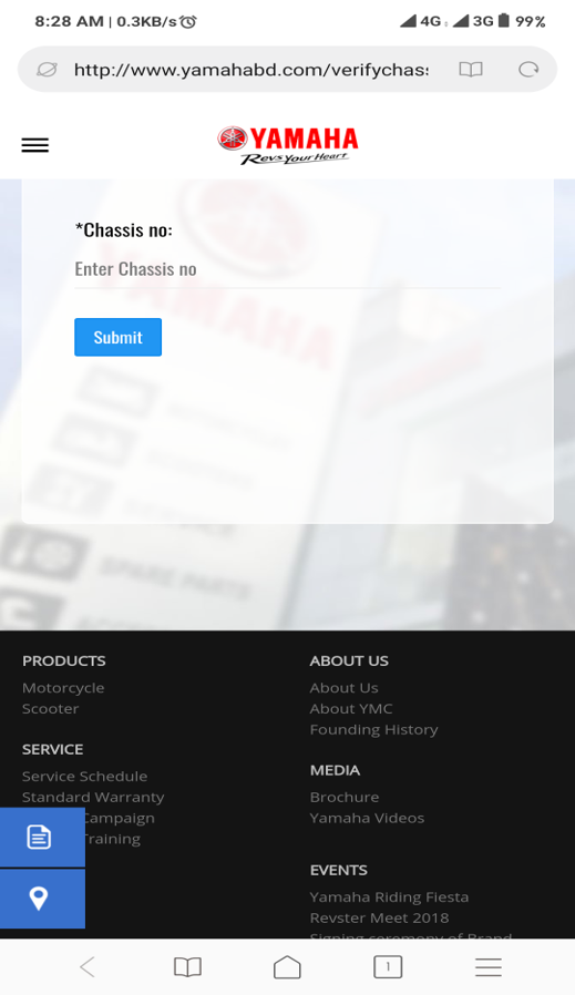 এন্টার প্রেস করবার পরে নিচের পেইজ টি আসবে, সেখানে আপনি আপনার বাইকের চেসিস নাম্বার টি ইনপুট করে সাবমিট বাটনে ক্লিক করুন।