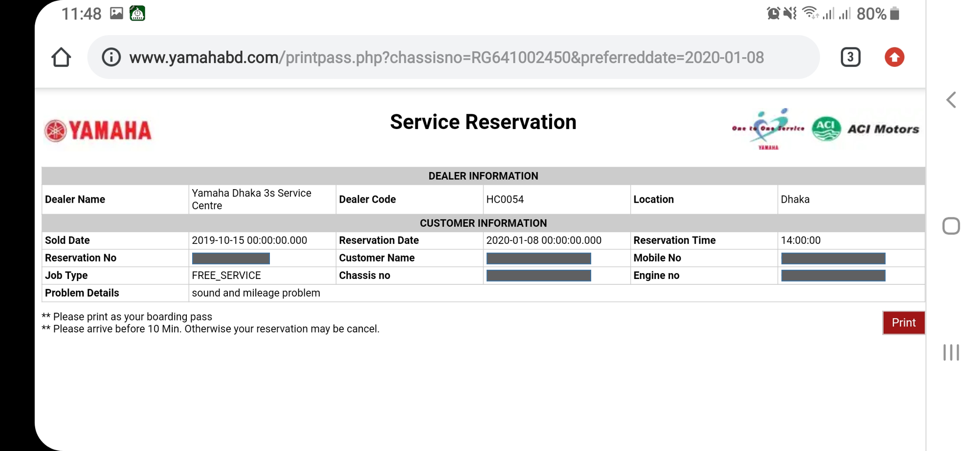 আপনি প্রিন্ট বাটনে ক্লিক করে সরাসরি প্রিন্ট করে নিতে পারেন বা এই পেইজ টি পিডিএফ করে আপনার ফোনে সেইভ করে নিতে পারেন যেন সার্ভিস এ যাবার সময় প্রিন্ট করে নিতে পারেন।