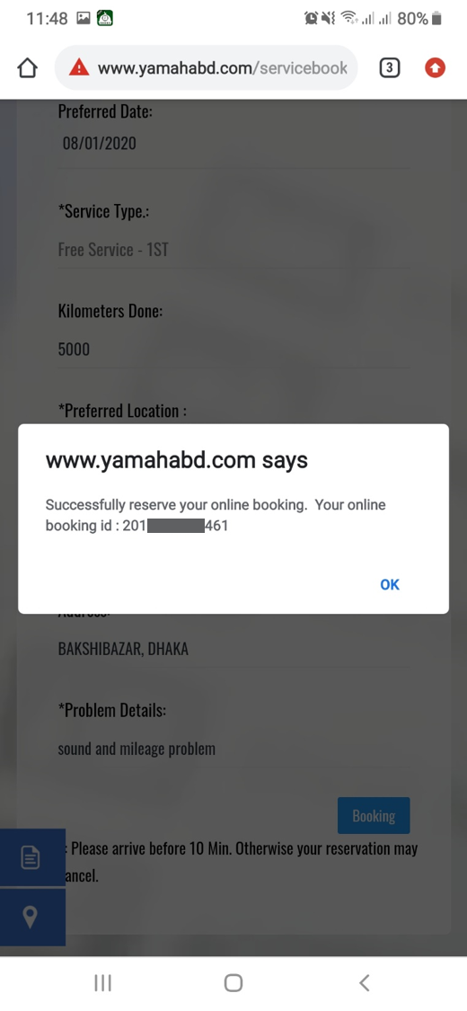ব্যাস হয়ে গেল আপনার সার্ভিস বুকিং। একটা বিষয় আপনাকে মাথায় রাখতে হবে তা হল আপনার দেওয়া সময়ের অন্তত ১০ মিনিট আগে নির্ধারিত সার্ভিস পয়েন্টের দায়িত্ব প্রাপ্ত বেক্তির নিকট বাইক সহ রিপোর্ট করতে হবে।