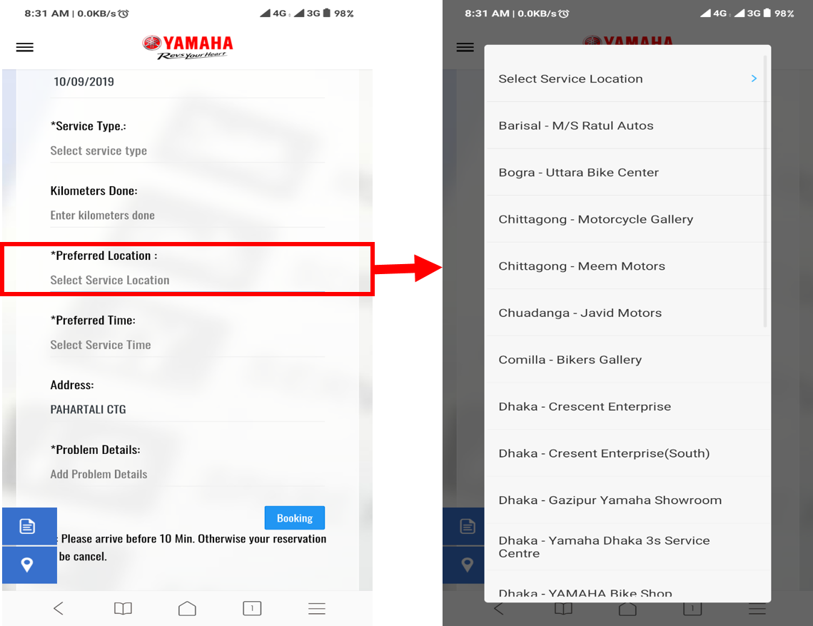 বাংলাদেশে ইয়ামাহা ব্যাবহার কারিদের সুবিধারথে মোবাইলের মাধ্যমে কিভাবে আপনি আপনার বাইকের সার্ভিস বুকিং করবেন তার বিস্তারিত তুলে ধরা হল…
